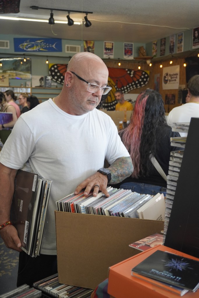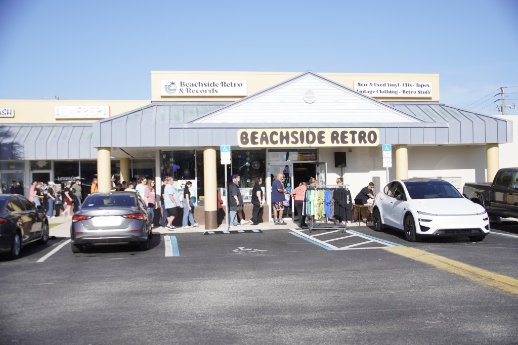 The crowd consists of casual fans and first-time vinyl buyers who have gathered outside Beachside Retro on Florida’s Space Coast, waiting for access to limited releases. Inside, rows of crates held exclusive pressings and reissues, each one a reminder that in a streaming-dominated era, music still holds a physical presence.